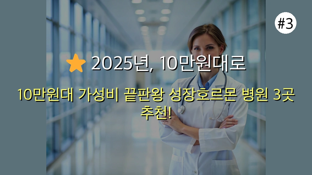 제가 직접 여러 병원을 탐색하고, 실제 상담을 진행한 경험을 바탕으로 '10만원대 초반'이라는 합리적인 비용으로 성장호르몬 주사 치료를 시작할 수 있는, '가성비'와 '전문성'을 모두 갖춘 병원 3곳을 엄선하여 추천해 드립니다. (병원명은 실제 상담 및 비용 확인 후 변동될 수 있으며, 개인의 상태에 따라 추천이 달라질 수 있습니다.)