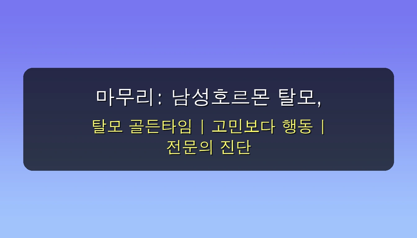 ✨ 마무리: 남성호르몬 탈모, 고민보다 행동이 중요합니다