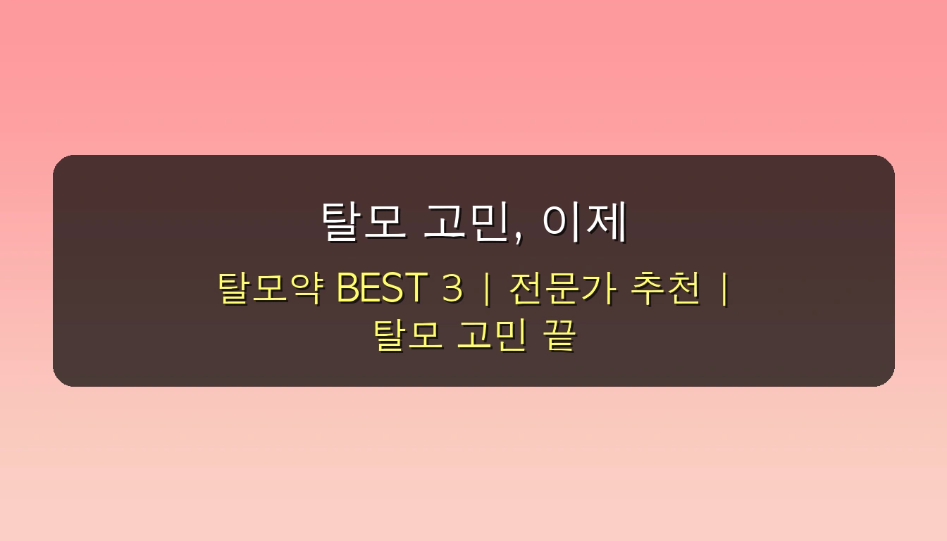 탈모 고민, 이제 그만! 전문가가 엄선한 탈모약 BEST 3로 확실하게 해결하세요