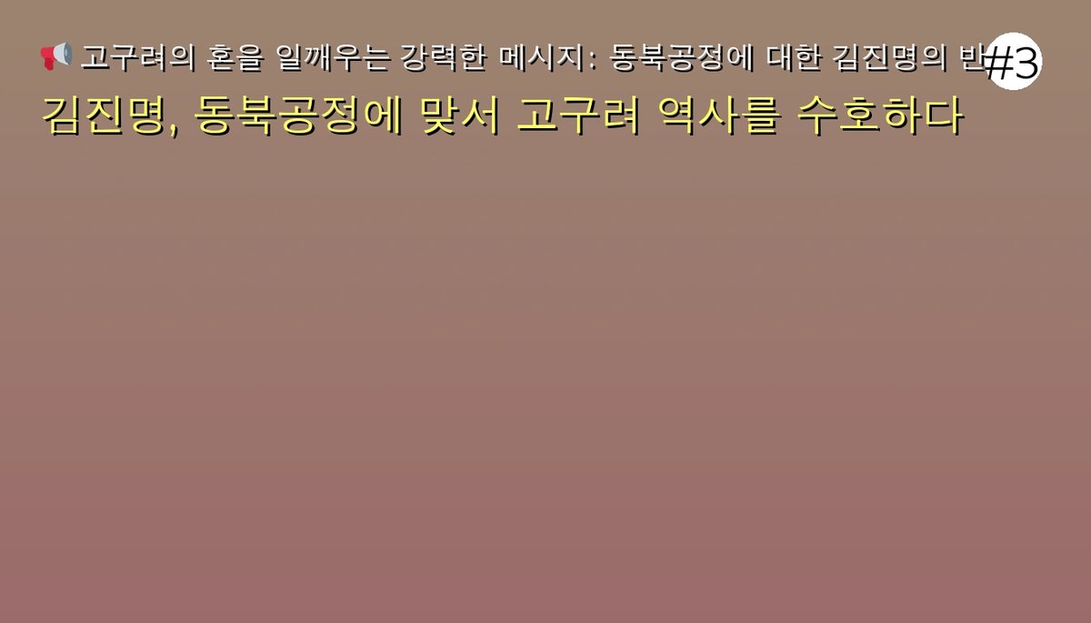 📢 고구려의 혼을 일깨우는 강력한 메시지: 동북공정에 대한 김진명의 반격