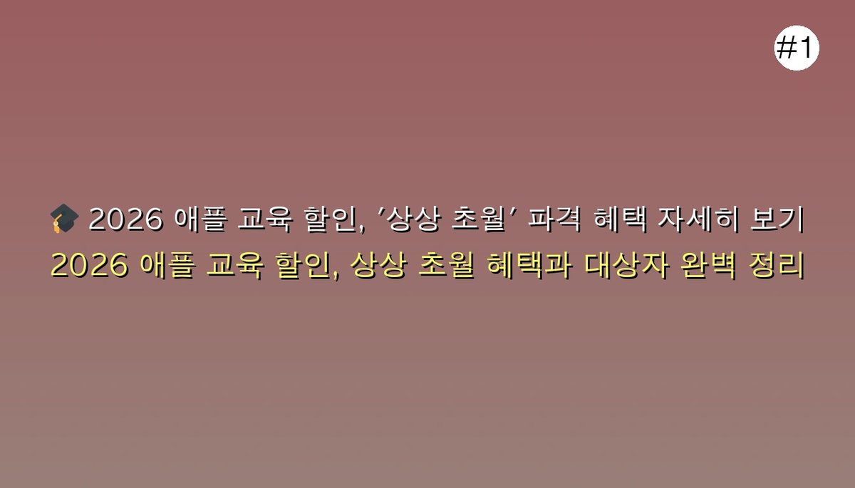 | 2026 애플 신학기 할인: ⏰5분 만에 '최대 50만원' 절약하는 '아무도 몰랐던' 완벽 가이드 (0) | 2026.01.05 |
