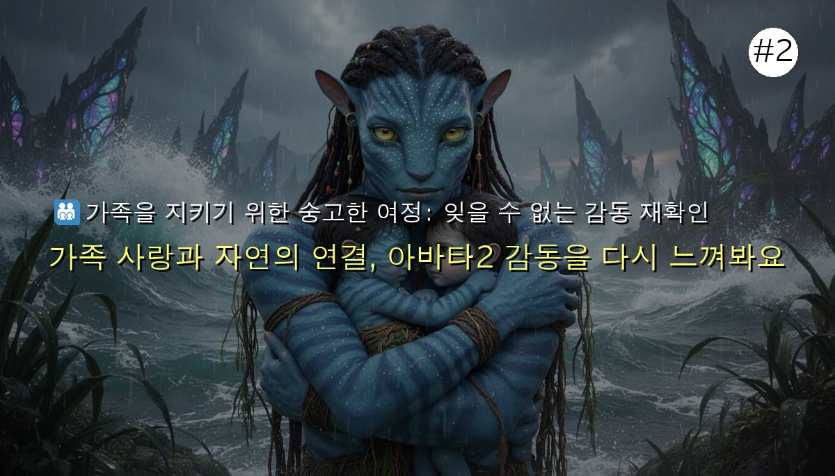 이번 아바타: 물의 길 재개봉을 절대 놓치지 말아야 할 가장 큰 이유는 바로 '가족'입니다. 제이크 설리와 네이티리 가족이 인간 자원개발청(RDA)의 위협으로부터 벗어나 새로운 터전인 바다로 향하며 겪는 여정은 깊은 울림을 줍니다.