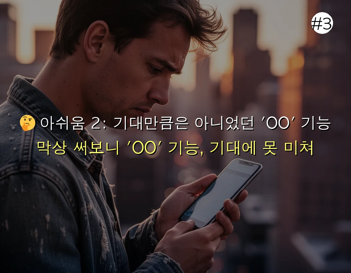 이번 아이폰 16e에서 가장 큰 기대를 걸었던 기능 중 하나는 바로 'OO' 기능이었습니다. 이 기능 때문에 모델 변경을 고려할 정도였는데요. 하지만 막상 사용해보니, 기대치에 조금 못 미치는 부분이 있었습니다. 생각보다 반응 속도가 느리거나, 특정 상황에서는 오작동하는 경우가 발생했습니다. 마치 아직은 완벽하게 완성되지 않은 듯한 인상을 받았습니다.