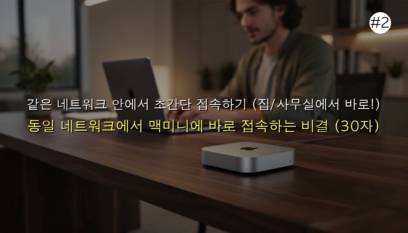 같은 공유기나 Wi-Fi를 쓰는 환경이라면, 추가 설정 없이 바로 맥미니에 접속할 수 있어요. 가장 빠르고 쉬운 방법이죠!