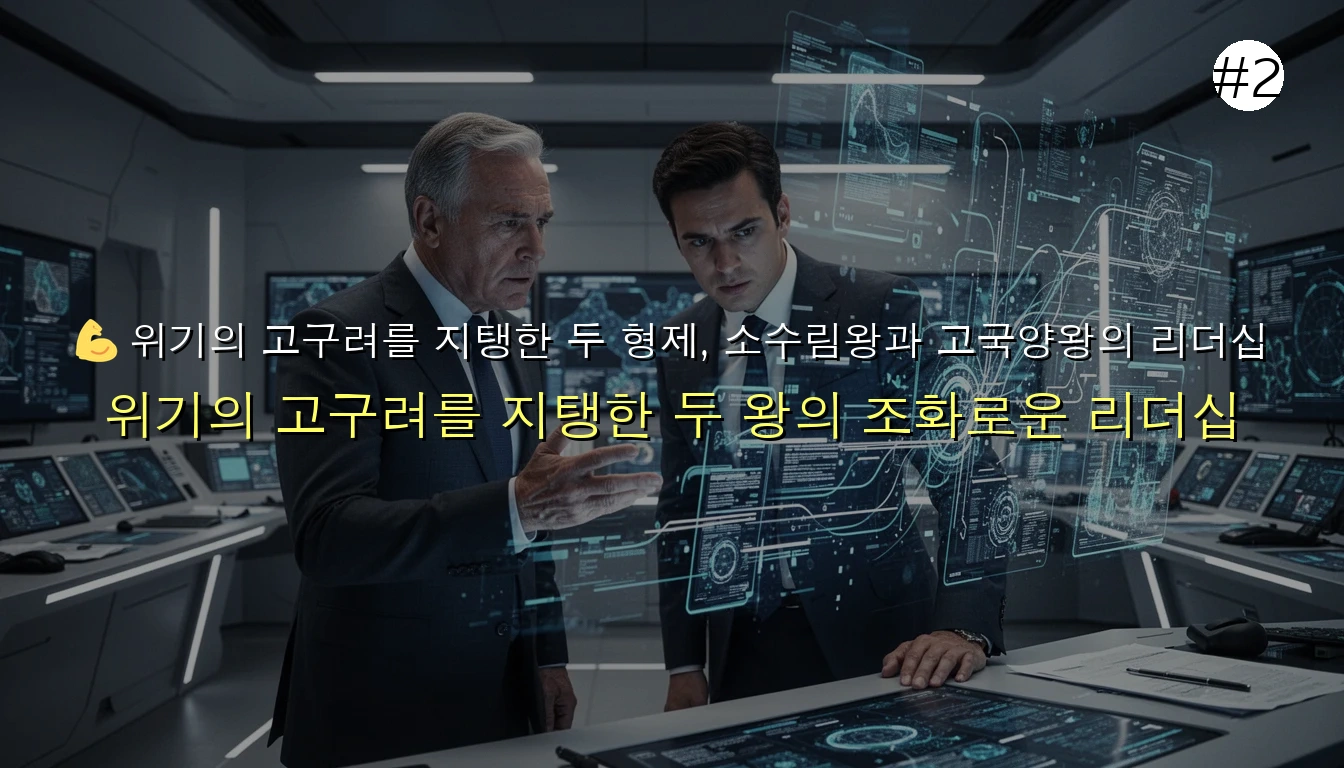 이어 즉위한 고국양왕은 형이 다져놓은 기반 위에서 현실적인 국방력 강화와 외세 견제에 집중하며 고구려를 굳건히 지켜냈습니다. 이 두 형제의 이야기는 우리에게 다양한 리더십의 형태가 어떻게 상호 보완적으로 작용하여 국가적 위기를 극복하고 번영을 이끌어낼 수 있는지 깊은 통찰을 제공합니다.