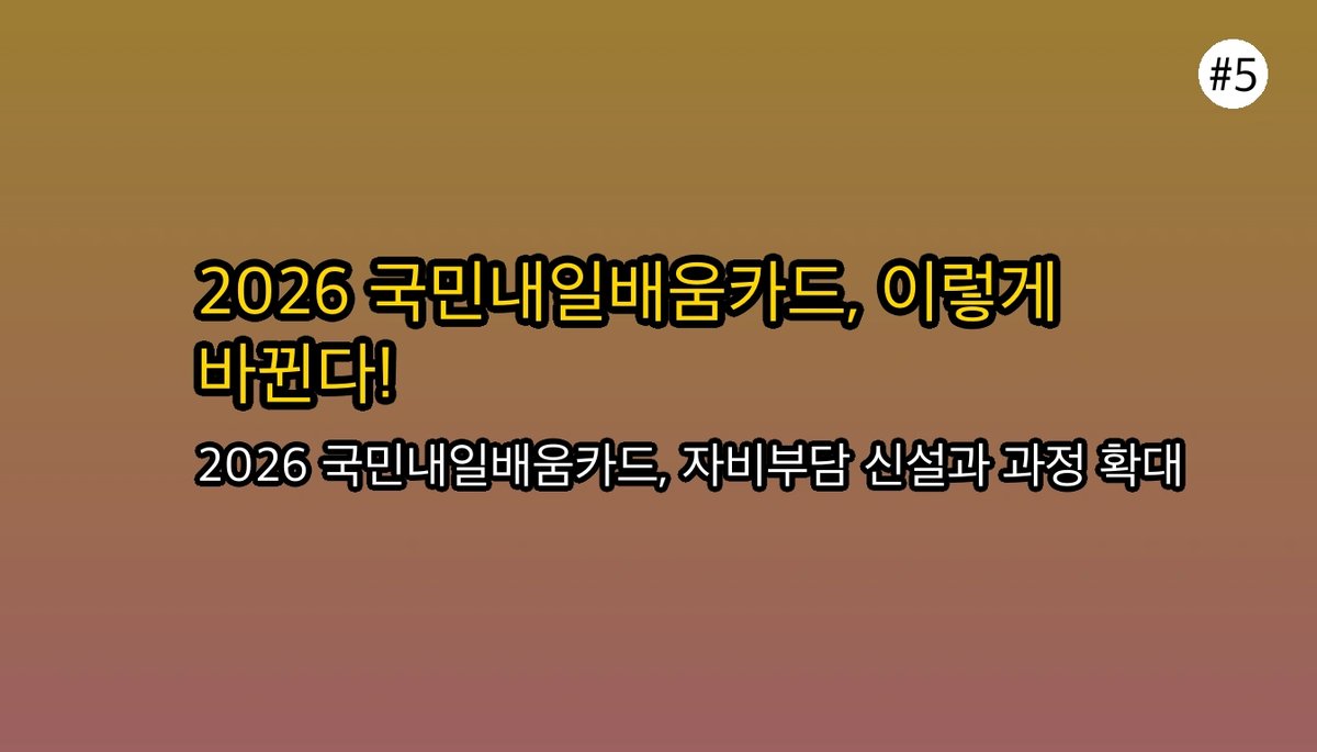 | 내일배움카드, 2026년엔 이렇게 바뀐다고? 놓치면 후회할 혜택 사용처 총정리! (0) | 2026.01.18 |