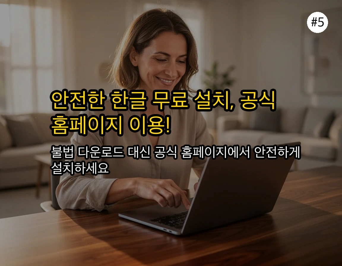 💡 가장 중요한 점: 바이러스 감염 위험이 있는 불법 다운로드 대신, 반드시 한글과컴퓨터 공식 홈페이지를 통해 안전하게 설치하세요. 여러분의 PC는 소중하니까요.
