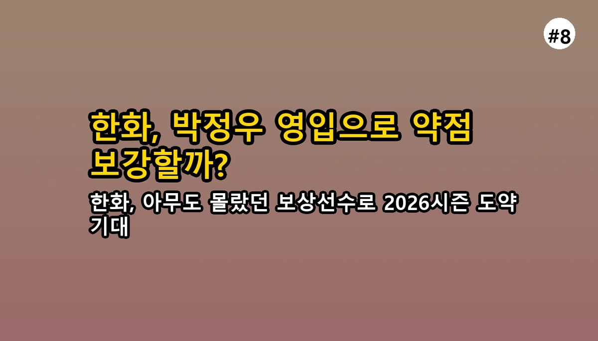 한화 이글스의 좌완 불펜 김범수 선수가 2026 FA 시장에서 KIA 타이거즈로 이적하면서, 한화는 KIA의 25인 보호선수 명단 외 보상선수 1명을 선택할 권리를 얻었습니다. 이 보상선수 한 명의 선택이 한화 이글스의 2026 시즌 전력에 큰 영향을 미칠 수 있기에, 팬들 사이에서는 벌써부터 뜨거운 논쟁이 이어지고 있어요. 과연 한화는 어떤 기준으로, 누구를 지명하게 될까요? 겉으로 보이는 데이터만으로는 알 수 없는 '진짜 내부자의 시선'으로 가장 유력한 후보를 파헤쳐 봤습니다.