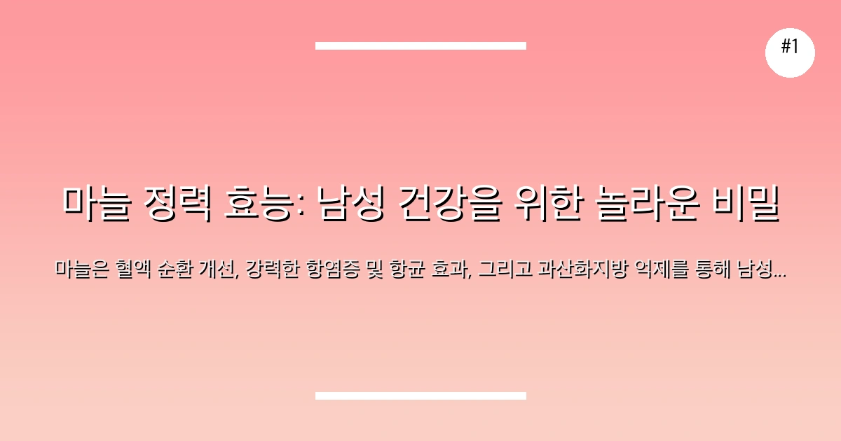 🎯 마늘 정력 효능: 남성 건강을 위한 놀라운 비밀