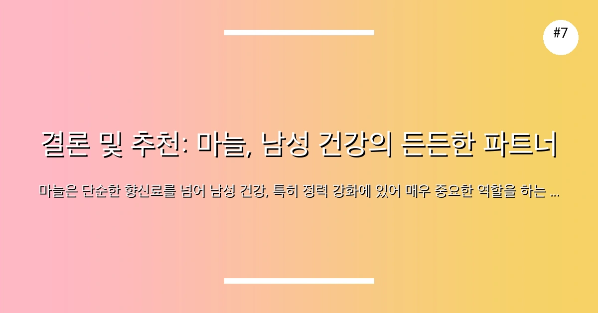 📸 결론 및 추천: 마늘, 남성 건강의 든든한 파트너