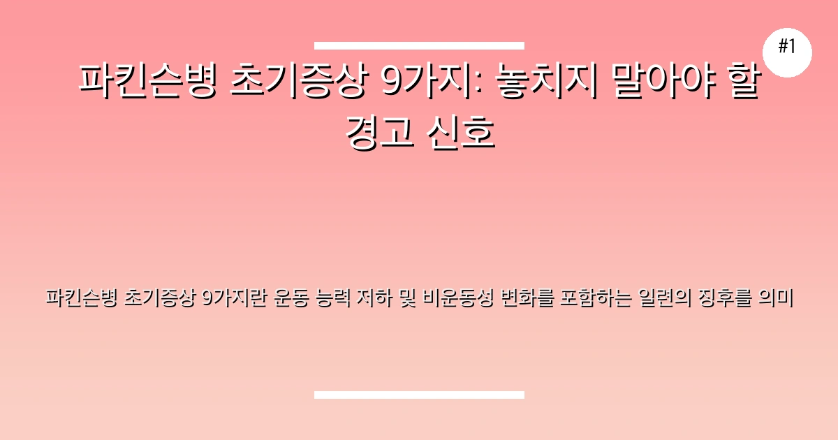 🎯 파킨슨병 초기증상 9가지: 놓치지 말아야 할 경고 신호