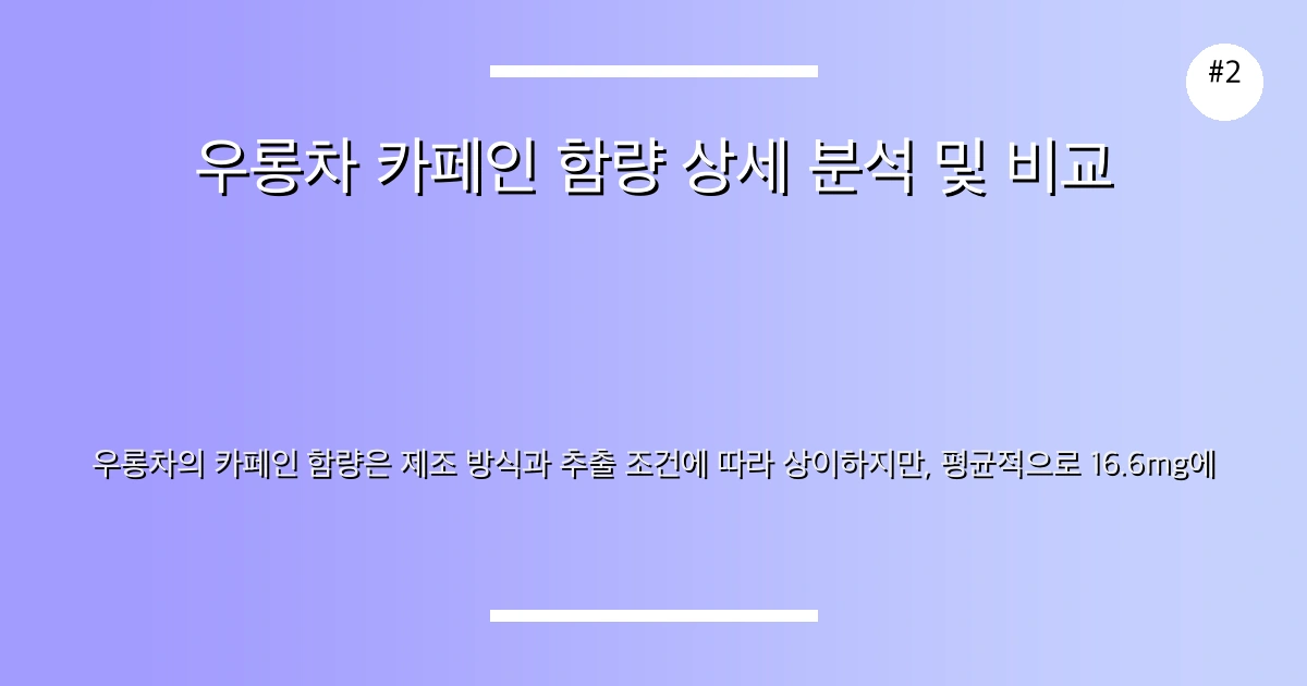 - 3단계: 카페인 함량이 낮은 대안 차 고려: 카페인에 매우 민감하다면 루이보스, 캐모마일, 페퍼민트 등 카페인이 전혀 없는 허브차로 대체하는 것도 좋은 방법입니다. 또한, 시중에는 디카페인 우롱차 제품도 있으니 이를 활용해 보세요.