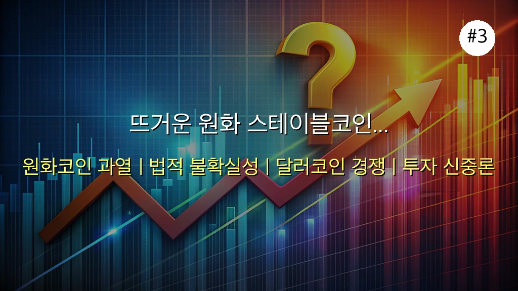 💡 전문가 인사이트: 현재 원화 스테이블코인 관련 투자는 법적 불확실성과 미 달러 기반 스테이블코인의 압도적인 시장 점유율을 고려할 때, 과도한 기대보다는 신중한 접근이 필요하다는 의견이 지배적입니다.