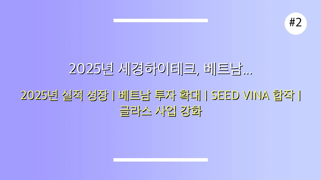 📊 2025년 세경하이테크, 베트남 발(發) 성장 동력 분석
