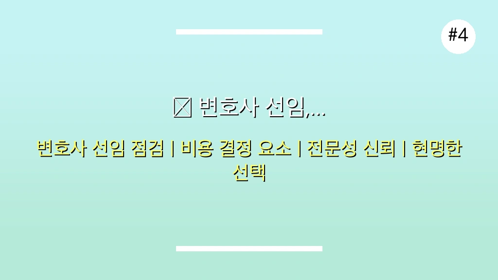 💡 전문가 인사이트: 법률 전문가들은 변호사 선임 시 단순히 비용 비교에만 집중하기보다, 변호사의 실제 사건 해결 경험, 전문 분야, 그리고 의뢰인과의 소통 능력 등 신뢰도를 종합적으로 고려해야 한다고 강조합니다. 합리적인 비용만큼이나 사건의 성공적인 해결이 중요하기 때문입니다.