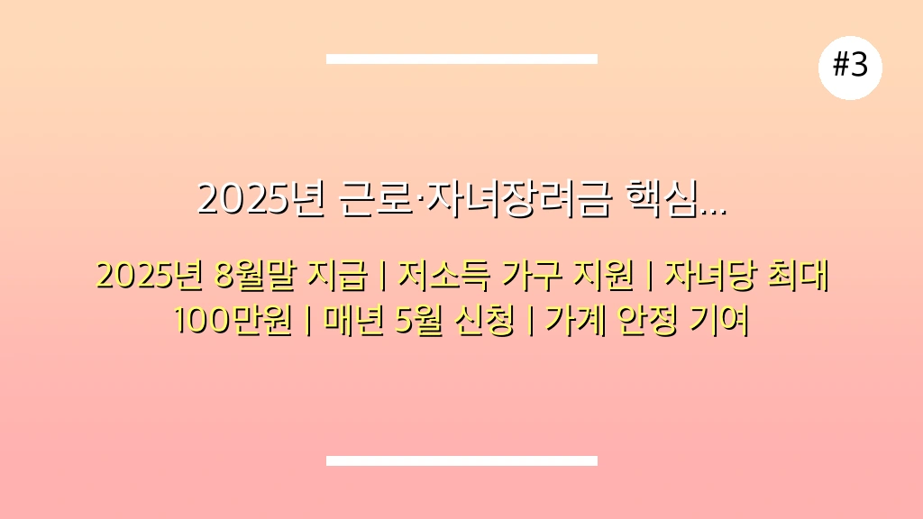 📊 2025년 근로·자녀장려금 핵심 정보 요약