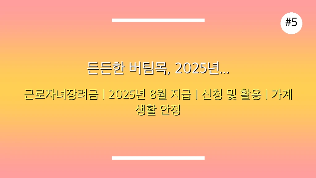 🎯 2025년 근로장려금 자녀장려금 지급일, 8월 말 확정 최신 정보 총정리