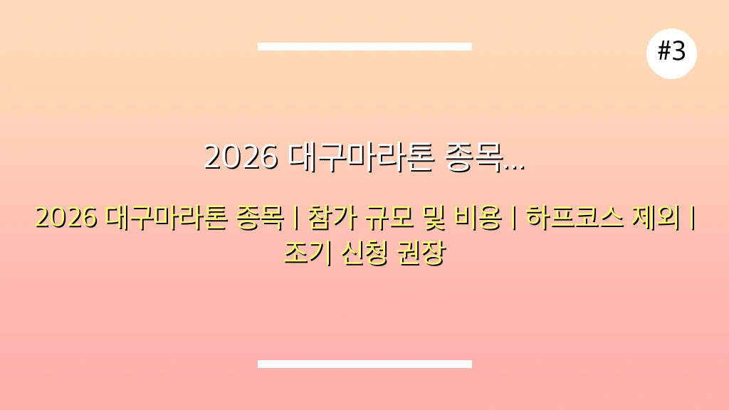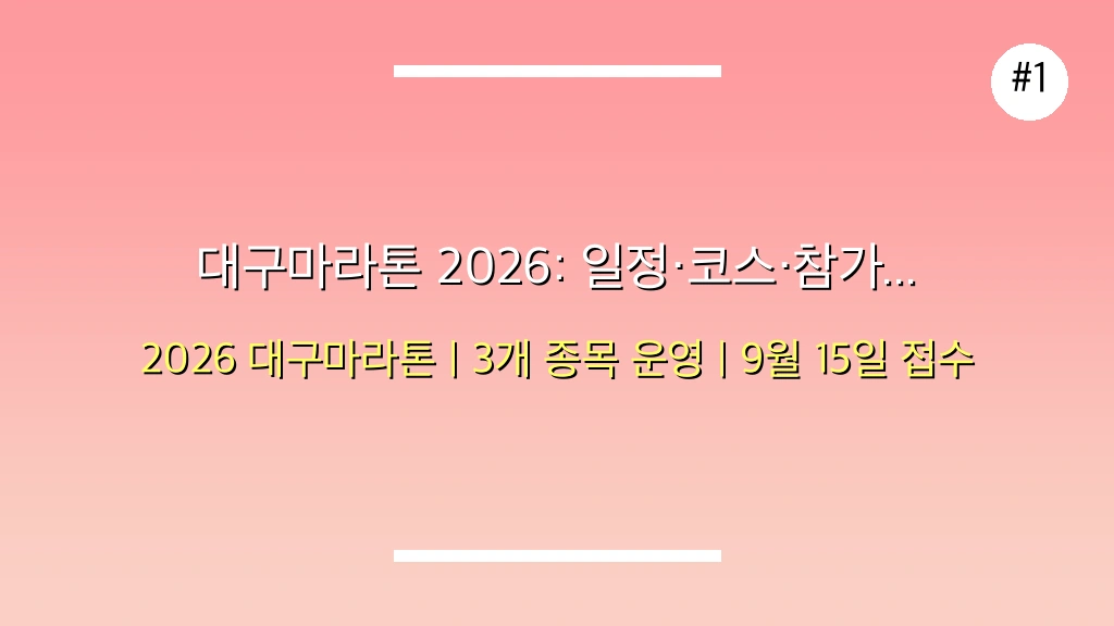 대구마라톤 2026은 2026년 2월 22일(일) 오전 9시에 대구스타디움과 대구 시내 일원에서 개최되는 국내 최대 규모의 국제 마라톤 대회입니다. 풀코스, 10km, 건강달리기 세 종목으로 진행되며, 하프코스는 제외됩니다. 참가 신청은 2025년 9월 15일부터 온라인으로 가능하며, 선착순 마감되므로 빠른 접수가 중요합니다.