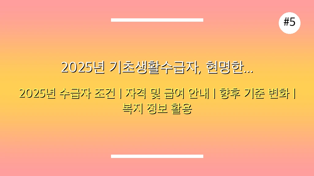 🌟 2025년 기초생활수급자, 현명한 복지 혜택 활용 전략