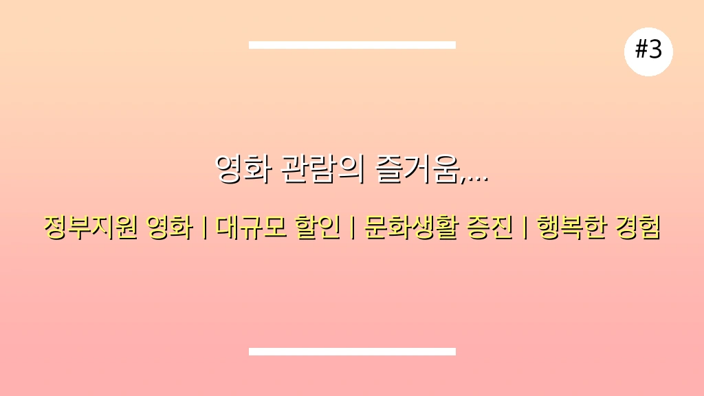 2025년 정부지원 영화 할인 쿠폰은 영화 관람을 좋아하는 국민들에게 매우 반가운 소식입니다. 약 271억 원의 추경 예산이 투입된 이번 정책은 침체된 영화 시장에 활력을 불어넣고, 고물가 시대에 부담 없이 문화생활을 즐길 수 있도록 돕습니다. 할인권 발급 및 사용 방법에 대해 더 자세히 알아보겠습니다.