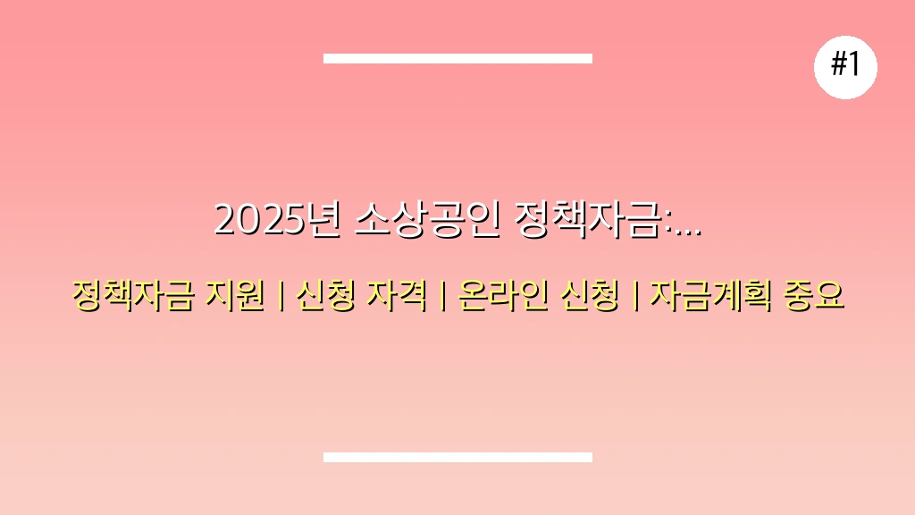 📊 2025년 소상공인 정책자금 신청 조건 및 주요 내용