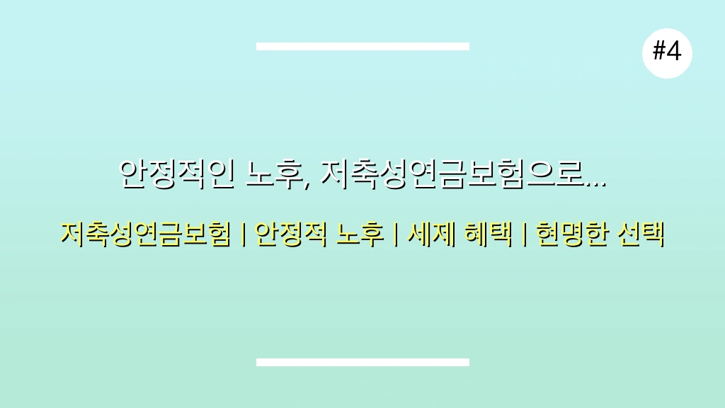 단순히 높은 이율만 좇기보다는, 본인의 은퇴 시점과 필요한 생활비, 그리고 장기적인 관점에서 세액공제와 같은 세제 혜택까지 종합적으로 고려하여 실속 있는 저축성연금보험 상품을 선택하는 것이 중요합니다. 이 가이드가 여러분의 성공적인 노후 준비에 실질적인 도움이 되기를 바랍니다. 미래의 당신을 위한 현명한 저축성연금보험 투자는 바로 지금 시작됩니다.