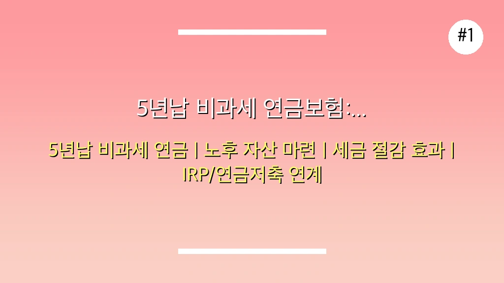 ✅ 비과세 연금보험 5년납, 당신의 든든한 노후를 위한 최적의 선택!