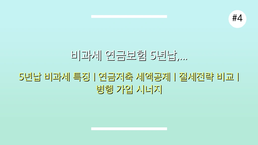 📊 5년납 비과세 연금보험, 핵심 구조와 세제 혜택 상세 분석