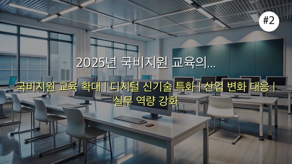 💡 전문가 인사이트: 2025년 국비지원 교육은 빠르게 변화하는 노동시장 수요에 맞춰 디지털 신기술 분야에 대한 투자를 확대하고 있습니다. 이는 미래형 인재 양성을 위한 정부의 강력한 의지를 보여줍니다.