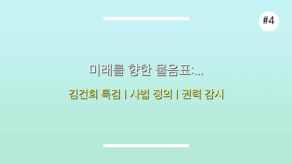 김건희 특검은 대한민국 사법 역사상 전례 없는 중대한 사건으로 기록될 것입니다. 현직 대통령 부인이 피의자 신분으로 조사를 받는다는 사실 자체가 우리 사회에 던지는 메시지가 크기 때문입니다. 이번 수사는 단순히 특정 개인의 혐의를 밝히는 것을 넘어, 권력의 사유화 및 특혜 의혹에 대한 우리 사회의 법적, 윤리적 기준을 재정립하는 매우 중요한 계기가 될 수 있습니다. 이는 대한민국의 민주주의와 사법 시스템이 한 단계 더 성숙해질 수 있는지 여부를 시험하는 과정이기도 합니다.