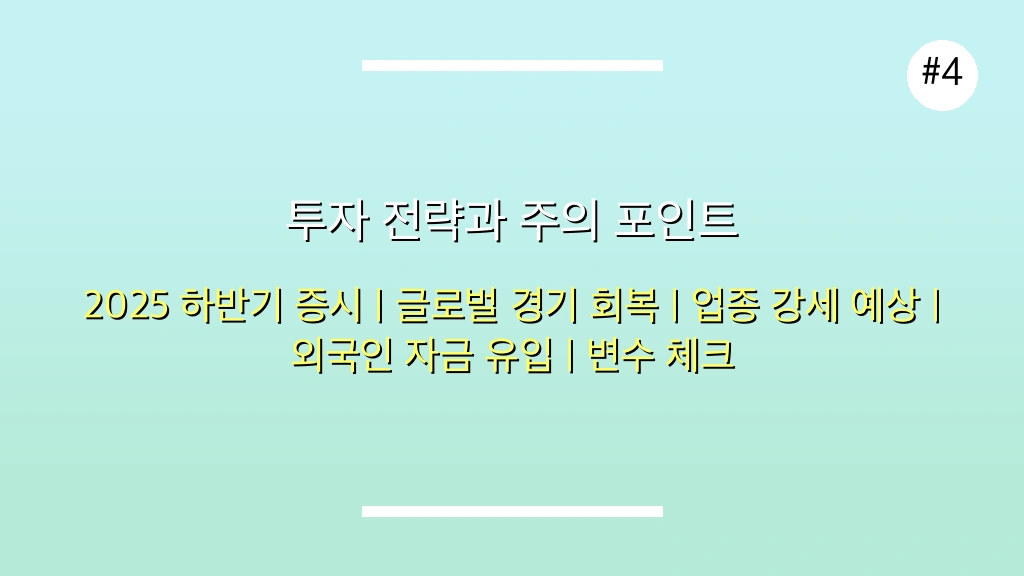 그럼 지금부터 2025년 하반기 국내 주식시장의 핵심 포인트들을 차근차근 짚어보겠습니다. 기대와 함께 신중한 전략도 함께 고민해봐요! 😊