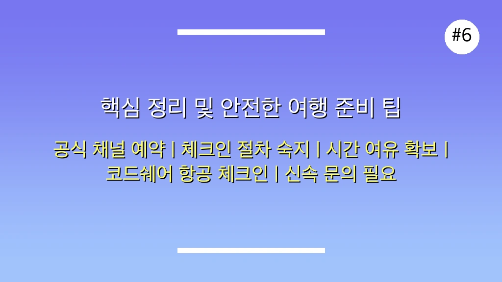 ✅ 공식 채널을 활용한 예약과 체크인은 항공편 정보의 정확성을 높이고, 문제 발생 시 신속한 대응이 가능하다는 점에서 매우 중요합니다.