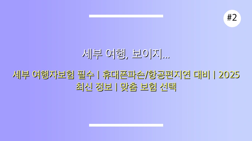 \n세부 여행을 떠나기 전, 여행자보험 가입은 필수입니다. 2025년 최신 트렌드를 반영한 보험 가입 가이드를 3단계로 정리했습니다.