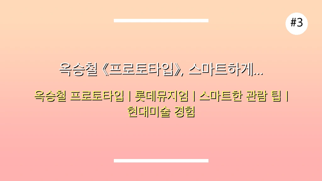", "tags": ["잠실 롯데뮤지엄", "옥승철 프로토타입", "옥승철 작가", "롯데뮤지엄 전시", "서울 전시회", "미술 전시", "현대미술", "웨이팅 없이 관람", "주말 나들이 추천", "문화생활 즐기기", "미술관 꿀팁"], "meta_description": "잠실 롯데뮤지엄 옥승철 '프로토타입' 전시, 웨이팅 없이 즐기는 3가지 꿀팁 총정리! 카카오톡 예약, 평일 오전 방문, 도슨트 활용법까지 상세 안내." } ```