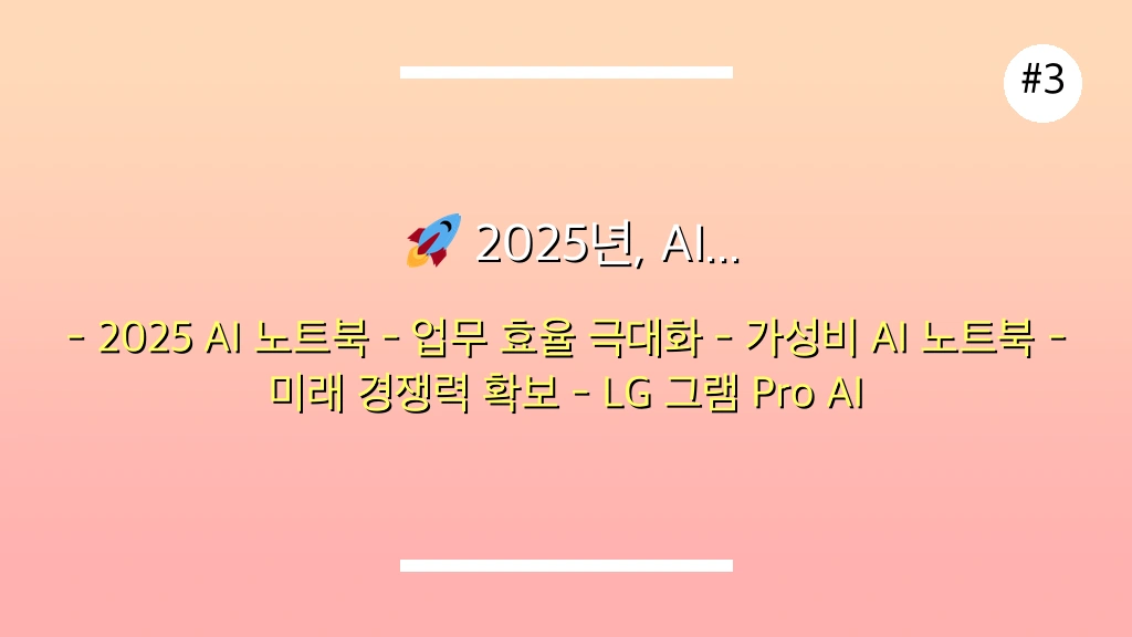2025년 가성비 AI 노트북 선택은 단순한 기기 구매를 넘어, 미래 경쟁력을 확보하는 전략입니다. LG 그램 Pro AI와 같은 AI 특화 모델부터 가성비 좋은 사무용 모델까지, 사용 목적과 예산에 맞춰 최적의 선택을 하시기 바랍니다. 기술 변화에 발맞춰 AI 노트북으로 업무 효율성을 높이고 새로운 가능성을 경험해 보세요!