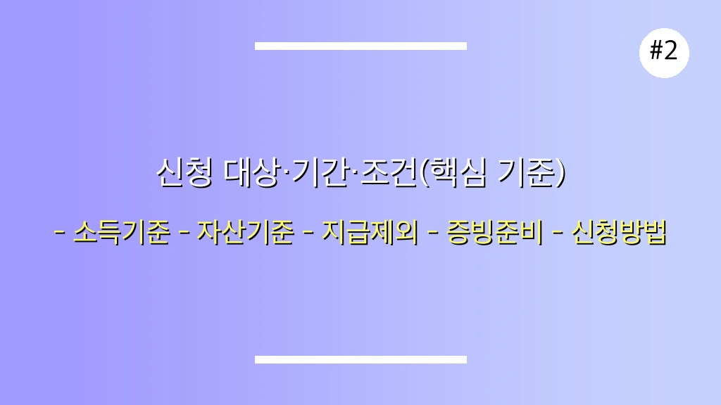 - 대상 여부 확인: 가구원·소득·자산 조건 확인