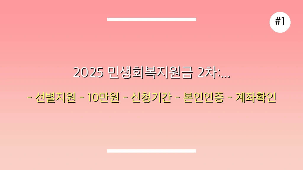 💡 전문가 팁: 민생회복지원금 2차는 소득·자산 기준으로 선별 지급됩니다. 신청 전 본인 가구의 소득·재산 정보를 우선 점검하세요.
