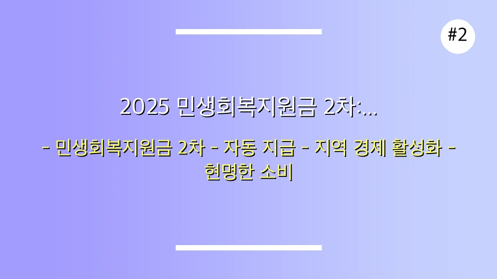 2025년 민생회복지원금 2차의 핵심 내용은 다음과 같습니다. 자격 요건과 지급 방식, 그리고 주요 유의사항을 꼼꼼히 확인하여 소중한 지원금을 놓치지 않도록 유의하시기 바랍니다.