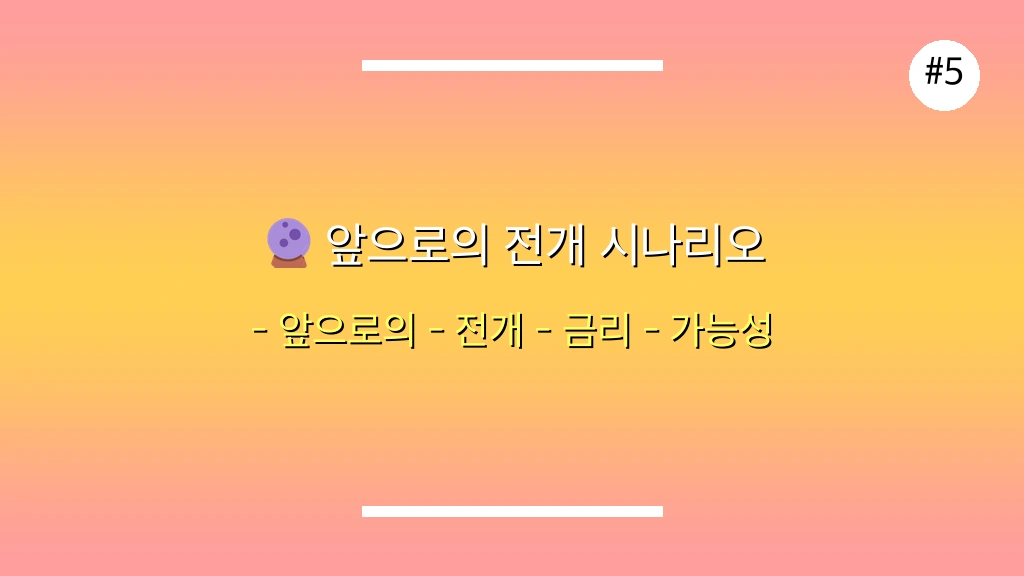 예상 전개: 미국 연준 금리 인하 시작, 한국 기준금리도 동반 인하. 경기 회복세 강화, 주택 공급 부족 해소 노력 지속.