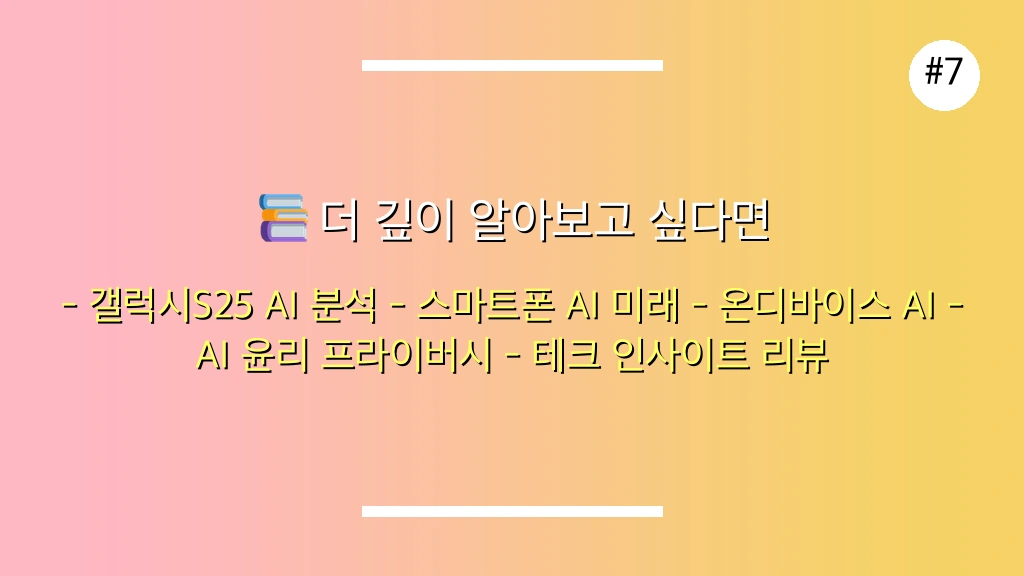 추천 이유: 갤럭시 S25의 AI 기능이 가져올 미래 사회 변화와 개인의 삶에 미칠 영향에 대한 깊이 있는 분석.