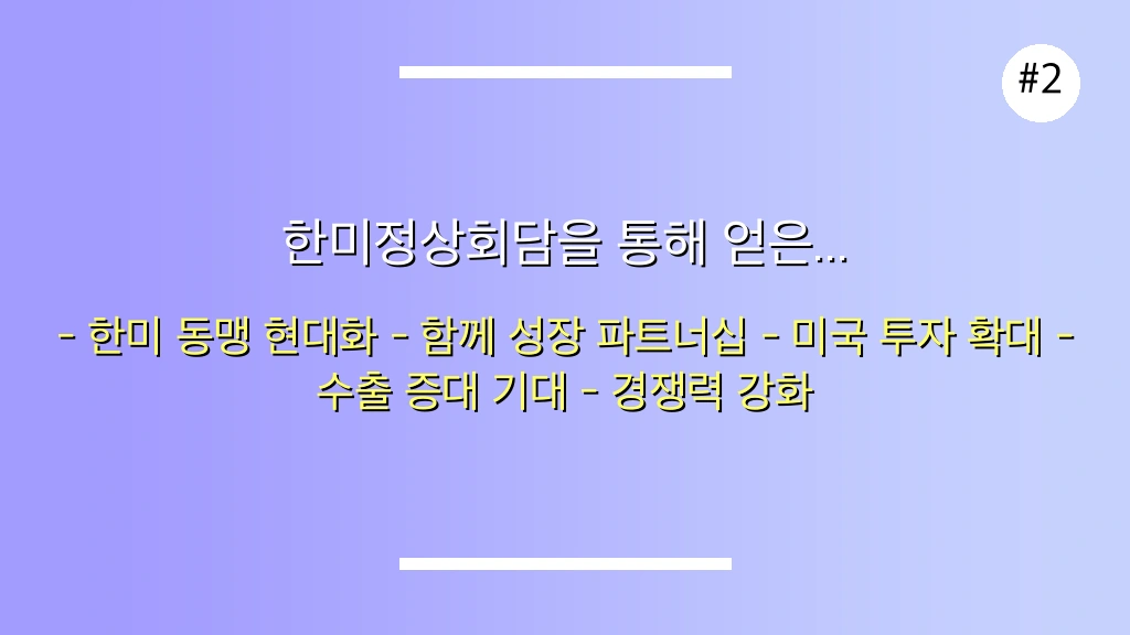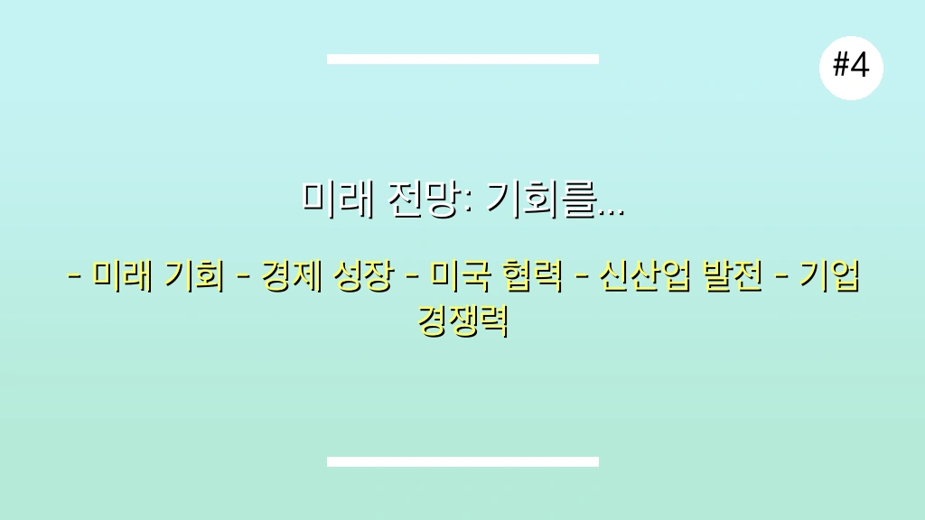 “이번 정상회담은 한국 기업들의 미국 내 경쟁력을 한 단계 끌어올릴 절호의 기회입니다. 동맹 현대화와 협력 강화를 통해 한국 기업들은 미국 시장에서 더욱 강력한 입지를 구축할 수 있을 것입니다.”