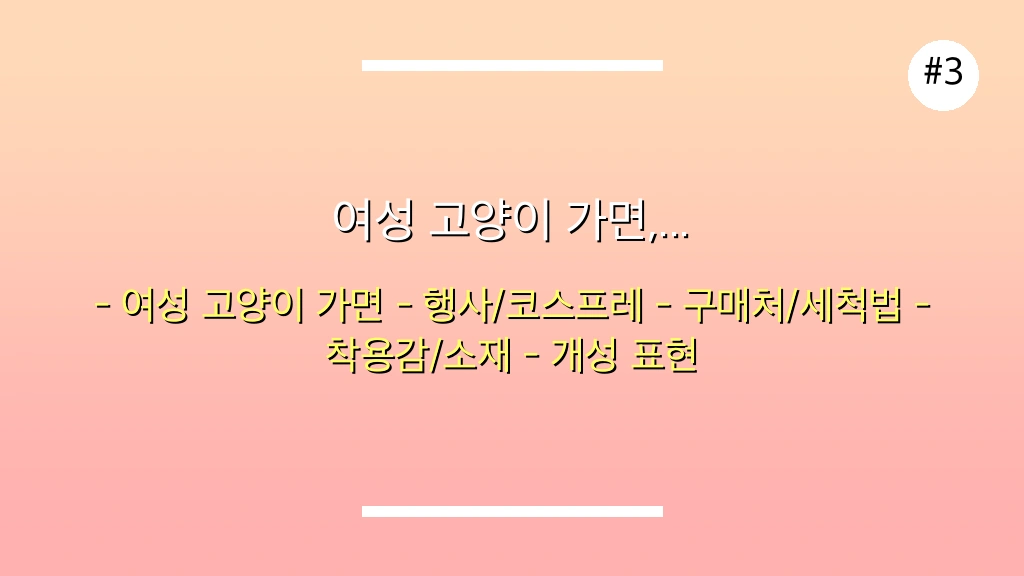 💡 포인트: 고양이 가면은 단순한 액세서리를 넘어, 당신의 특별한 날을 더욱 빛나게 해줄 핵심 포인트입니다. 개성을 표현하고 잊지 못할 순간을 연출해 보세요.