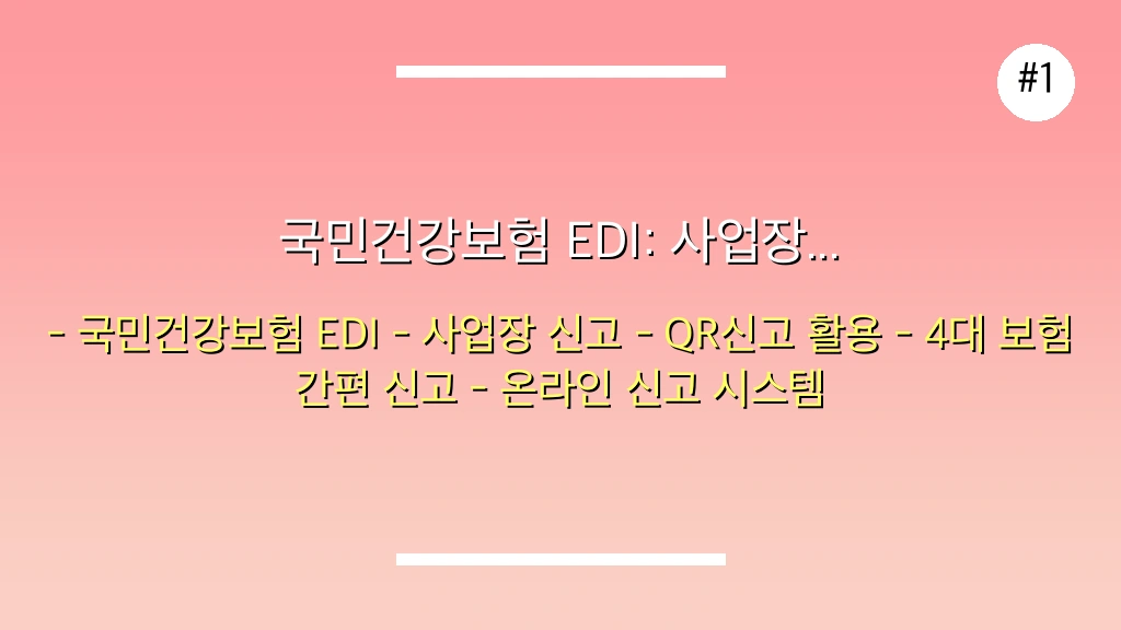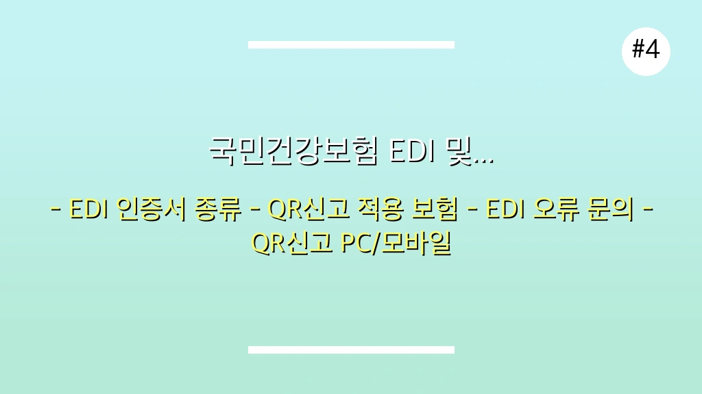 국민건강보험 EDI 시스템은 사업장에서 건강보험, 국민연금 등 관련 신고 업무를 온라인으로 처리하는 필수 플랫폼입니다. 특히 최근 도입된 QR신고 방식은 사용자 편의성을 크게 향상시켜, 가입부터 활용까지 모든 과정을 숙지하는 것이 중요합니다. 이 가이드에서는 EDI 가입 방법부터 QR신고 활용법까지 상세하게 안내해 드립니다.