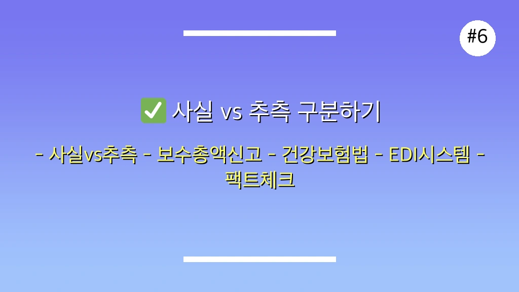 💡 팩트체크 방법: 국민건강보험공단 고객센터(1577-1000) 또는 관할 지사 문의, EDI 시스템 내 도움말 및 FAQ 활용.
