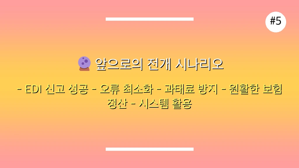 예상 전개: 사업장 담당자가 EDI 시스템 가이드라인을 잘 숙지하고, 인사/총무팀 간의 협업을 통해 정확하고 신속하게 신고를 완료합니다.