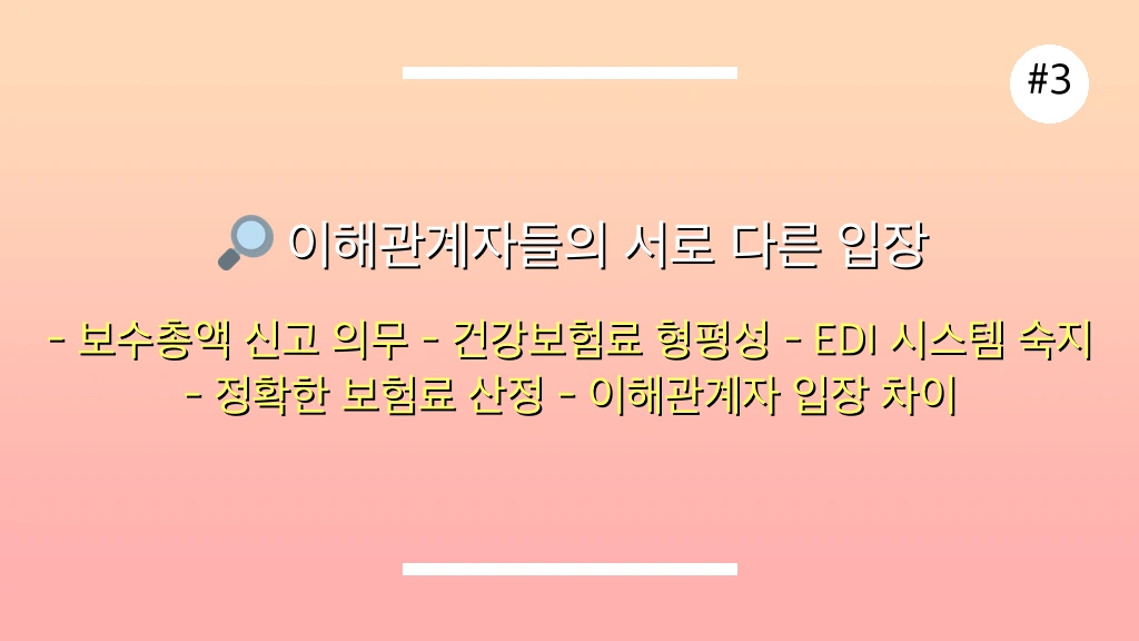 주요 입장: 정확한 보수총액 신고를 통해 건강보험료 부과의 형평성을 확보하고 재정 건전성을 유지해야 합니다.