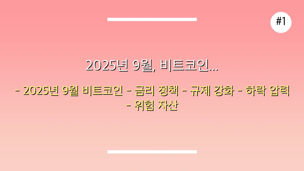 2025년 9월, 비트코인 시장은 여러 거시 경제 지표와 규제 환경 변화로 인해 하락 압력에 직면할 가능성이 있습니다. 금리 정책, 규제 강화, 기술적 분석 등 주요 변수들을 면밀히 분석하고, 철저한 사전 준비와 분산 투자를 통해 잠재적 위험에 대비해야 합니다.