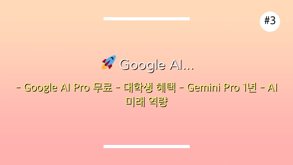 💡 Google AI Pro 학생 프로모션은 미래 사회를 이끌어갈 대학생들에게 AI 기술 접근성을 높여, 창의성과 문제 해결 능력을 배양하도록 돕는 중요한 기회입니다.