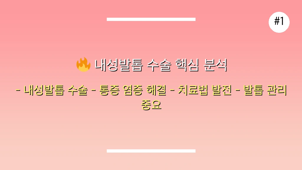 핵심 쟁점: 내성발톱 수술은 통증과 염증을 동반하는 질환의 효과적인 해결책이며, 최근 다양한 치료법이 발전하고 있습니다.