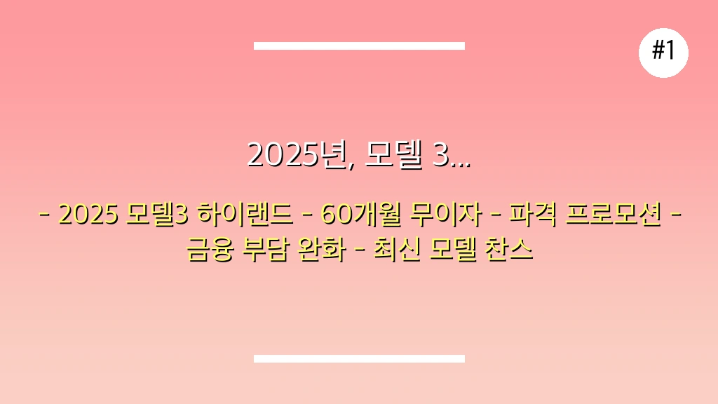 2025년, 테슬라 모델 3 하이랜드 구매를 망설이고 계신가요? 최대 60개월 무이자 할부 프로모션을 통해 차량 가격 부담을 획기적으로 줄일 수 있는 절호의 기회를 놓치지 마세요!